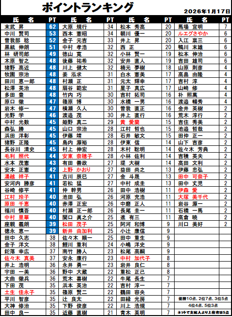 ハンディキャップ&ポイントランキング