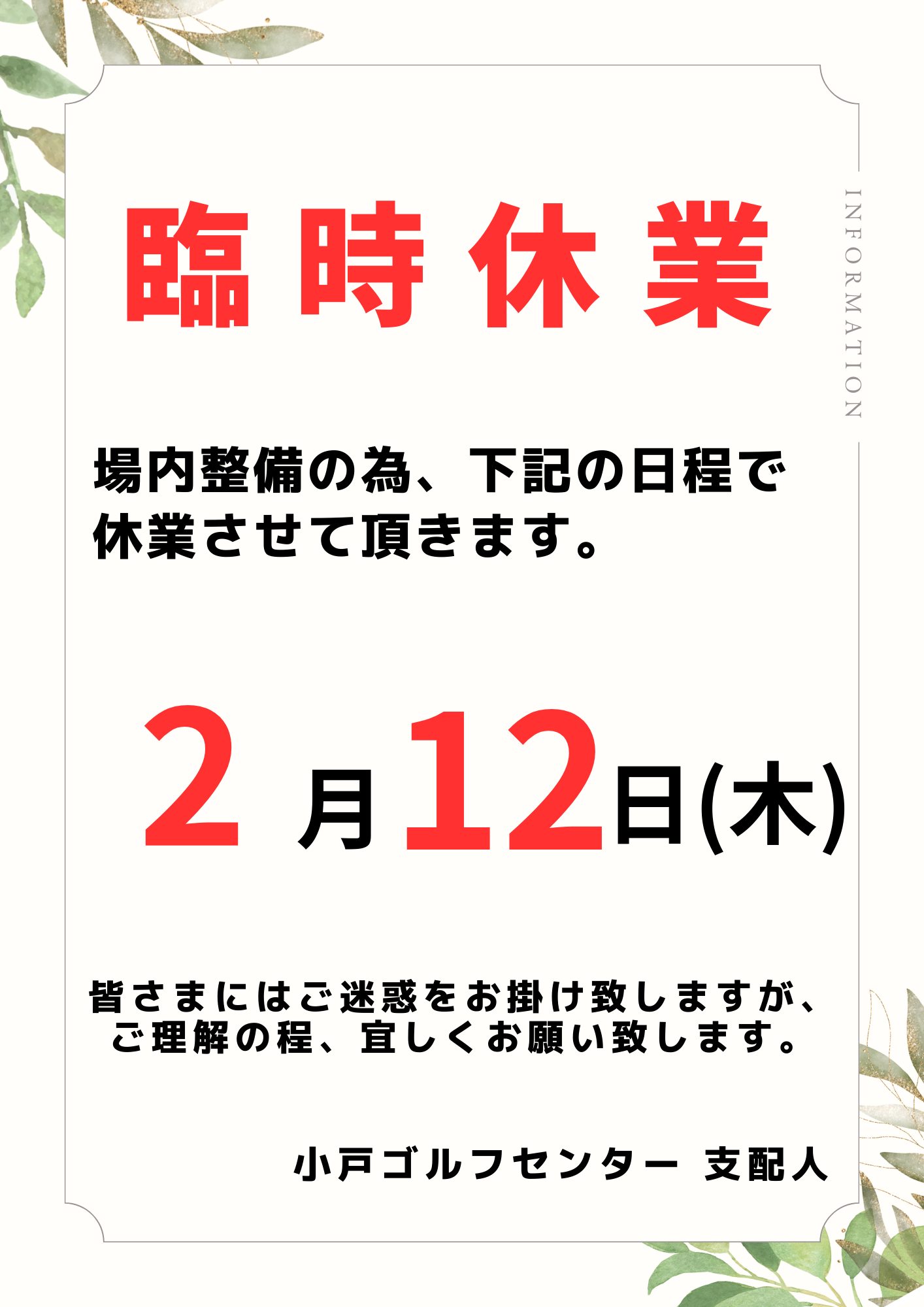 2月12日(木)臨時休業いたします。詳しくはこちらをクリックしてください。