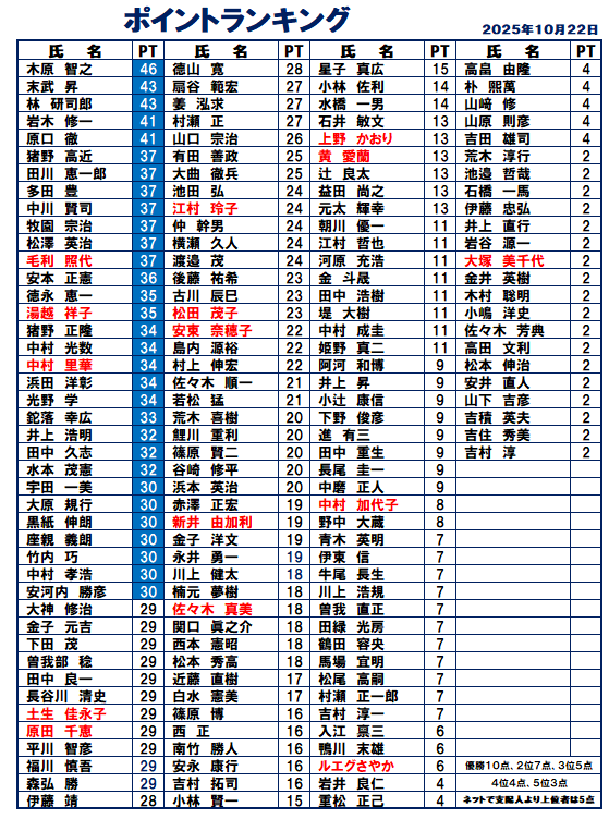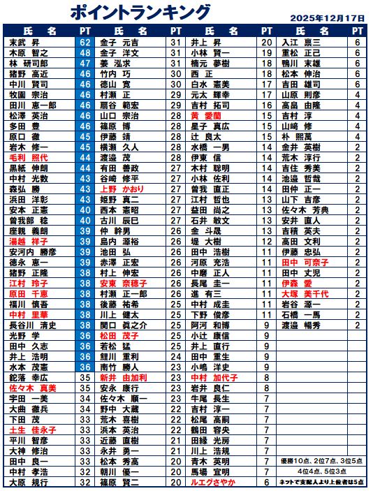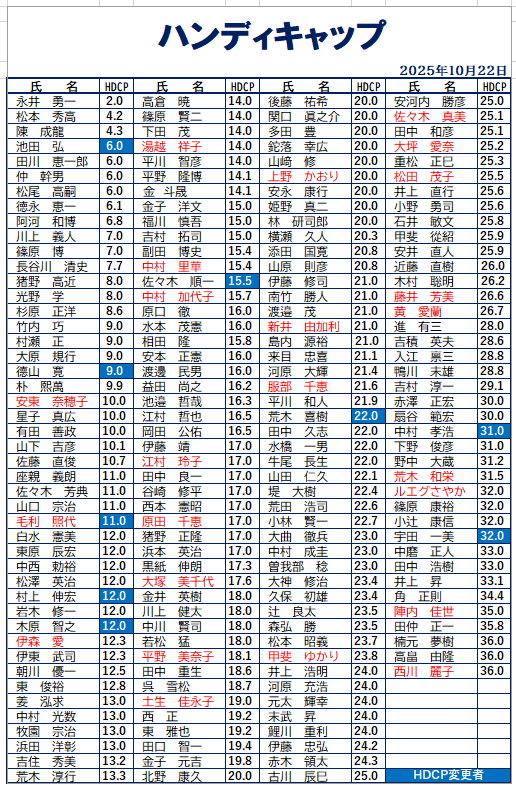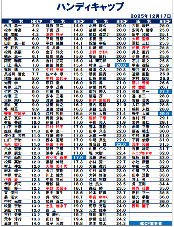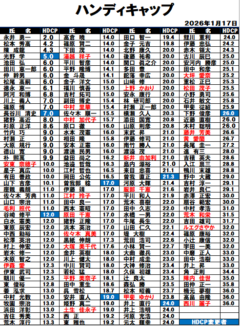 ハンディキャップ&ポイントランキング