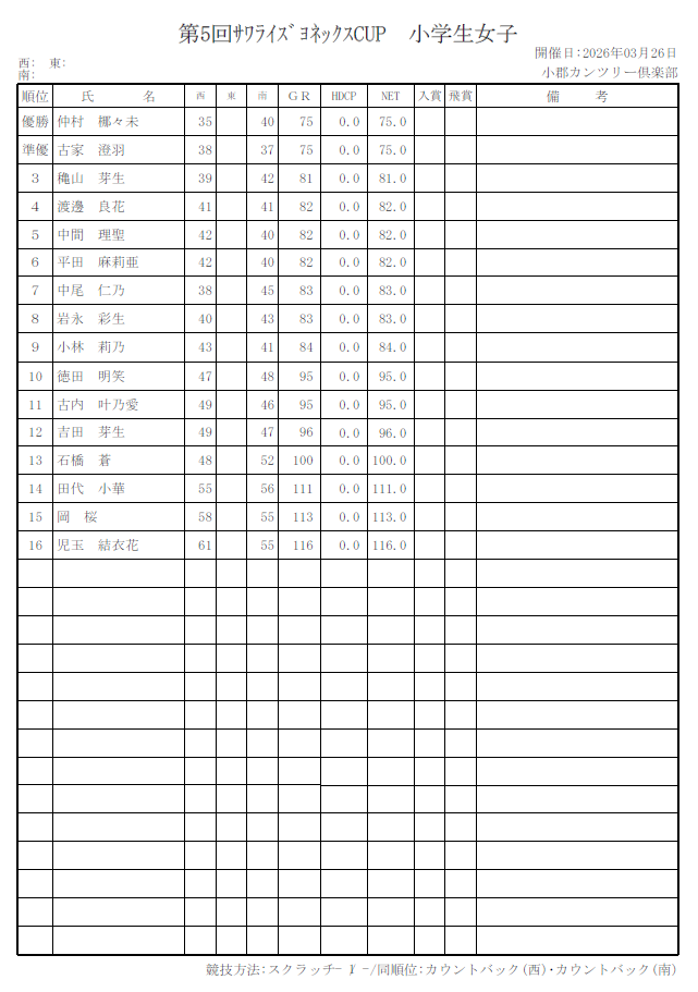 第5回サワライズカップジュニアゴルフ大会結果